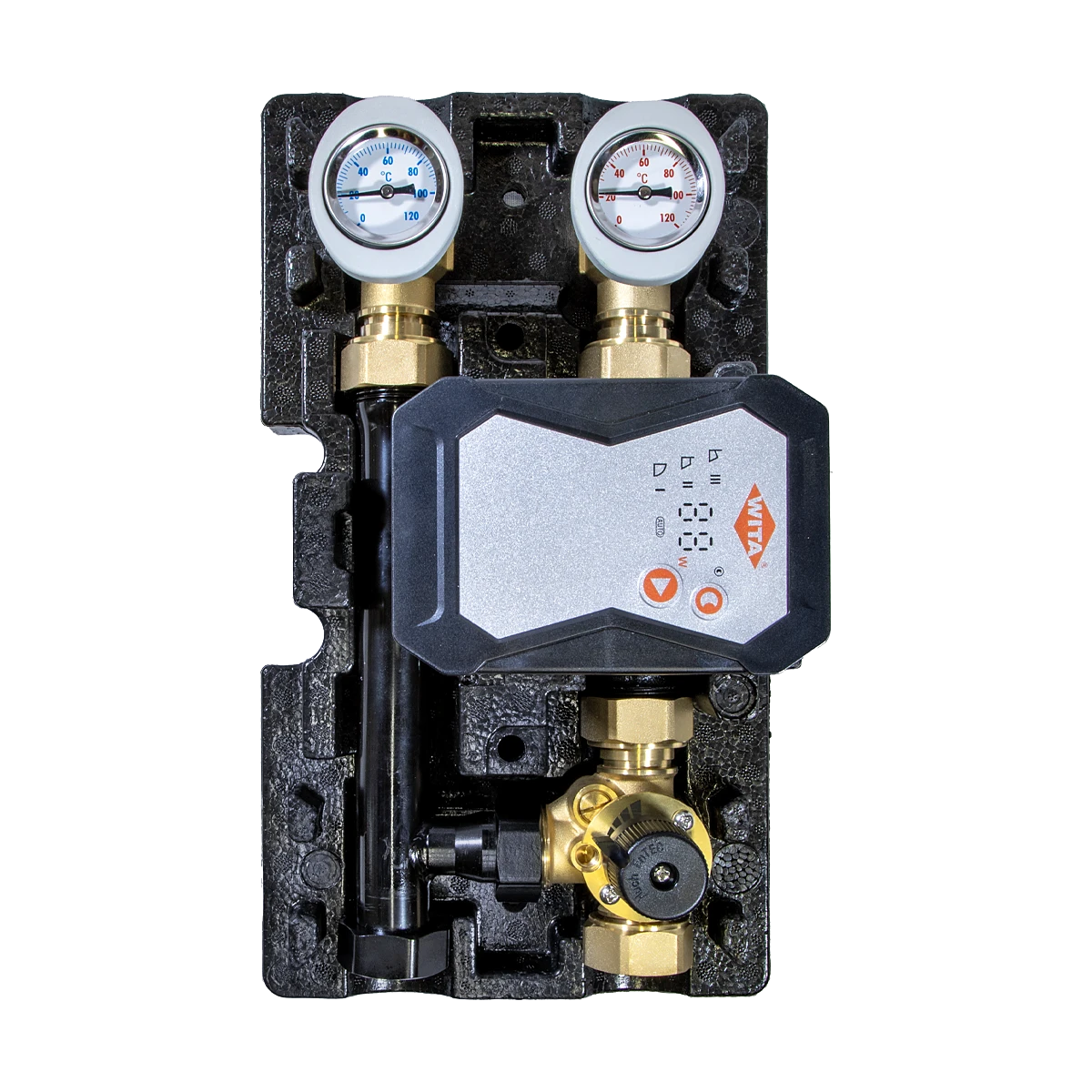 Регулируемый (смесительный) контур в котором необходимо держать определенный температурный график путем смешения подающей и обратной линии. Используется для подключения контура подогрева пола, стен, контура радиаторного отопления и вентиляции. Для управления смешением необходимо использовать соответствующий сервопривод, который подключается к автоматике котельной или вентиляционной установки.